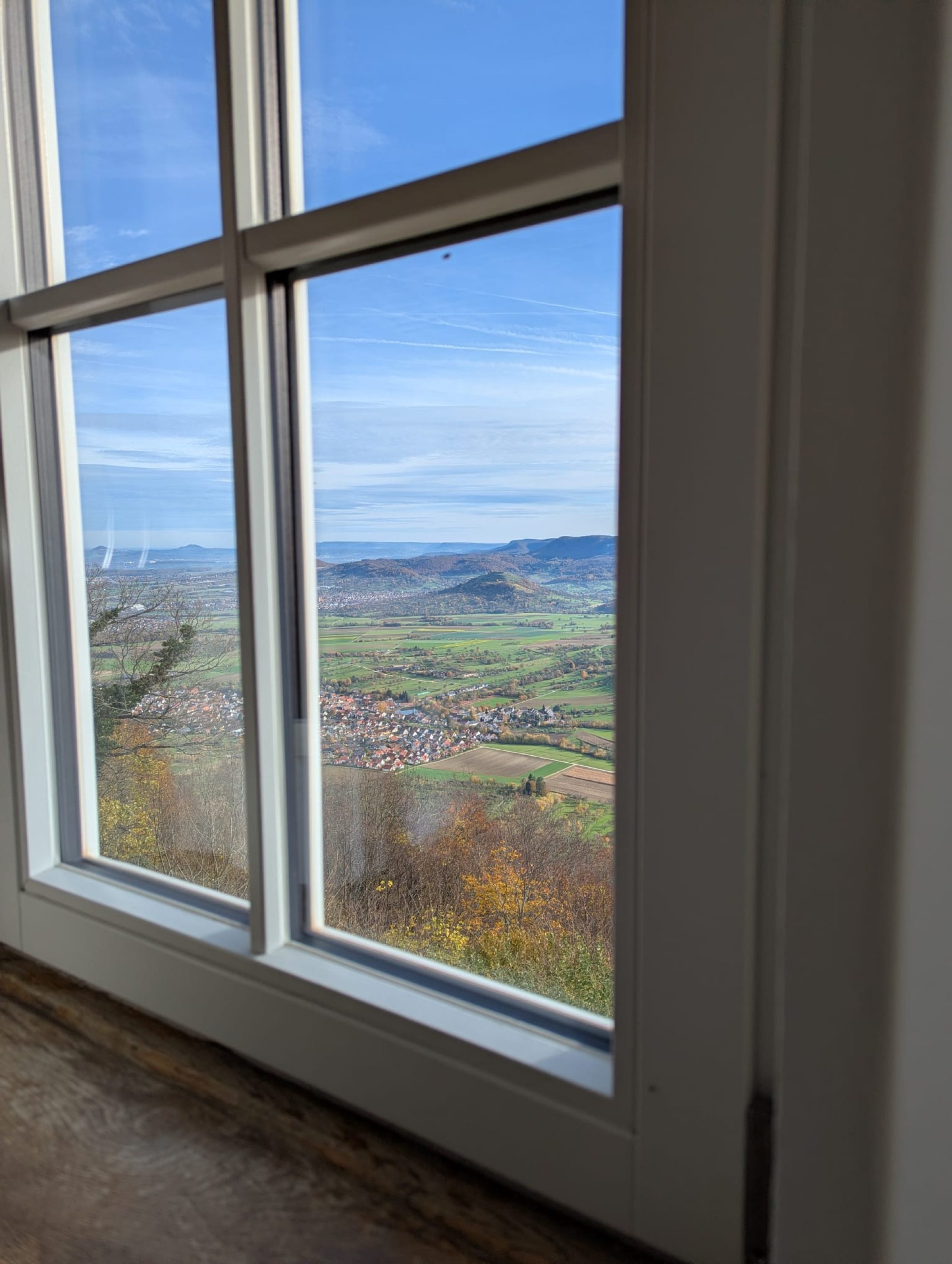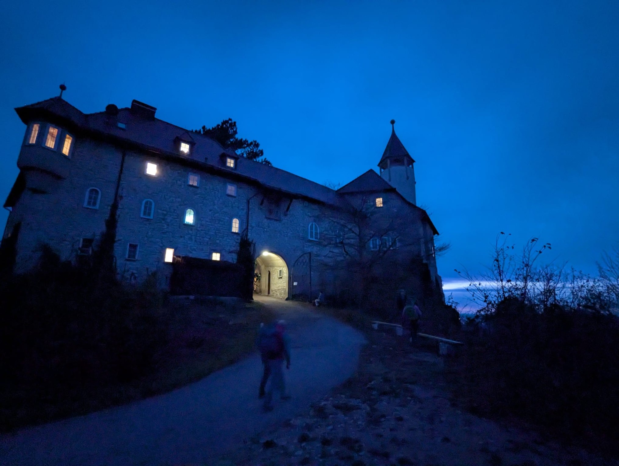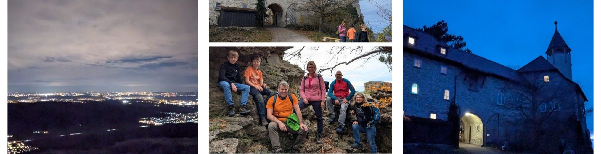Nach unserer kleinen Fackelwanderung zum Aussichtspunkt „Gelber Fels“ bewunderten wir von der Burg die tolle Fernsicht über Kirchheim, Esslingen, Stuttgart sowie das Neckartal und bis ins Remstal und konnten beobachten, wie einige Gäste nach dem sehr schmackhaften Abendessen wieder ins Tal fuhren.
