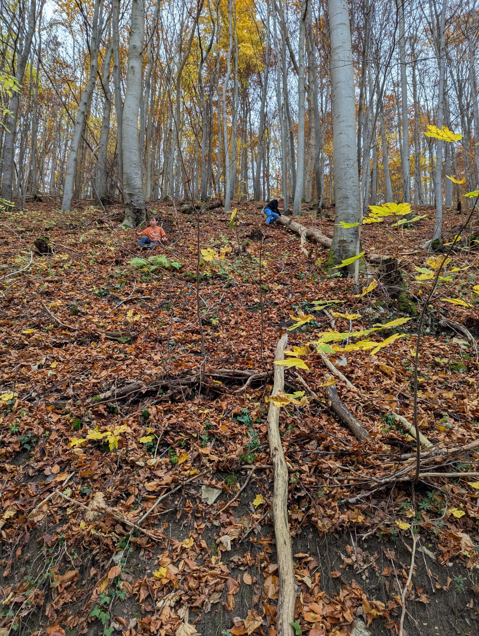 Zurück auf Blätterwegen, die bis zum Knöchel reichten und bei jedem Schritt ein Rauschen erzeugten. An den Buchen entdeckten die Jungs Baumperlen, die sie mit ihrem Taschenmesser geschickt abtrennen und zum Schnitzen mitnahmen.