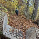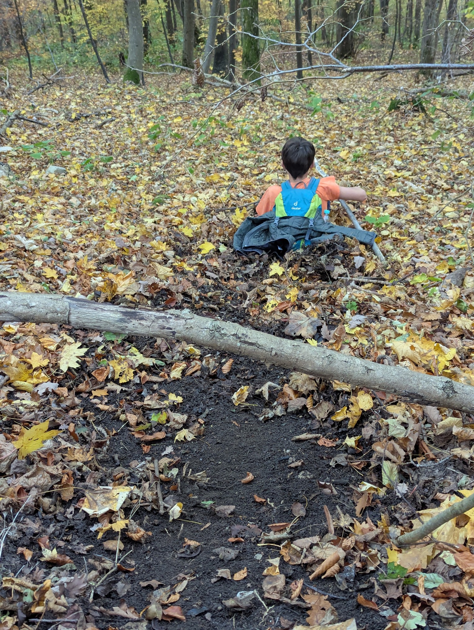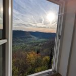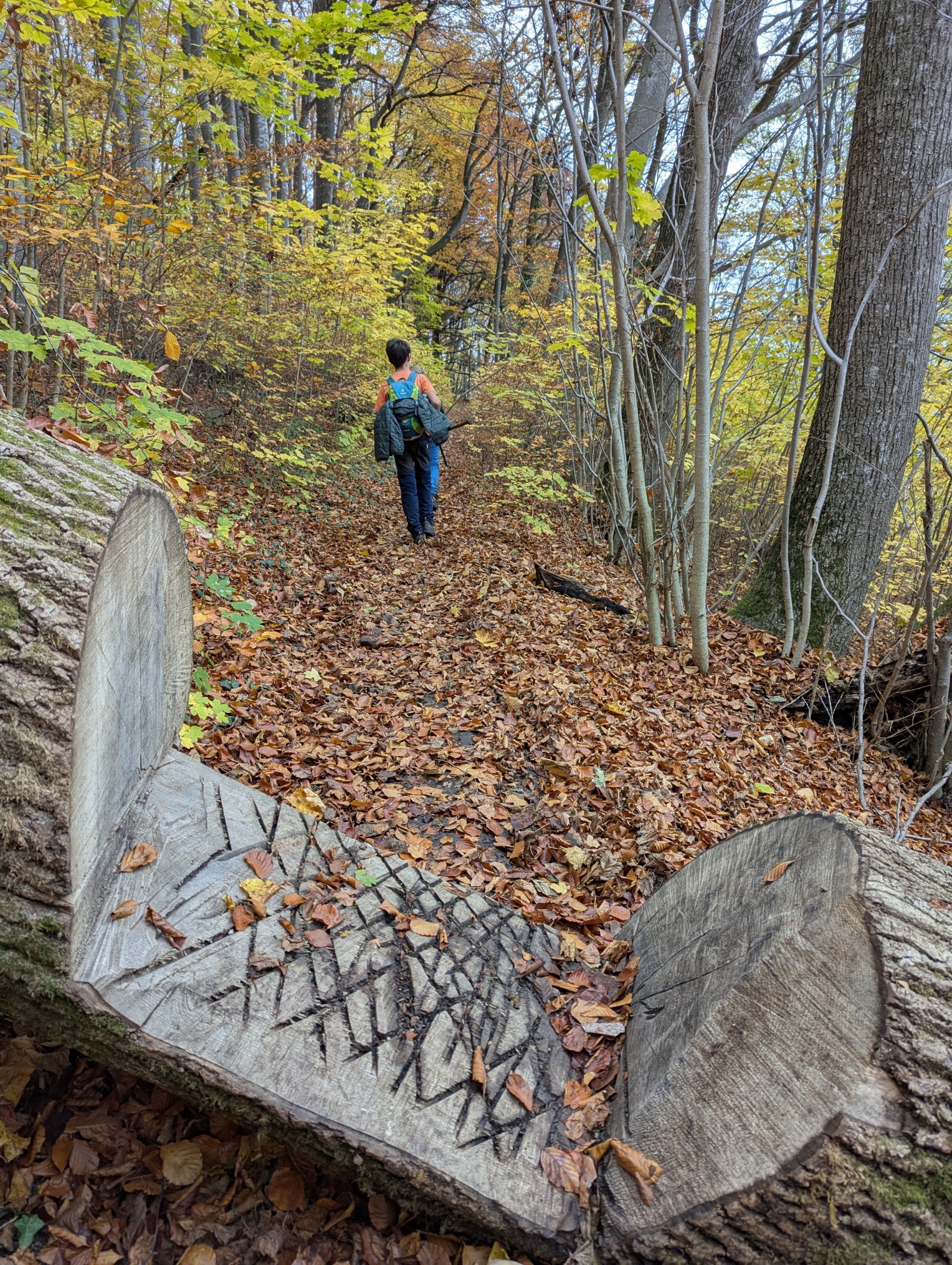 Wir betrachteten das Verena-Beutlin-Loch genauer; zu dieser Zeit war es vor allem mit buntem Herbstlaub gefüllt. Den Berg hinunter und auf der anderen Seite wieder hinauf zur Ruine Rauber.