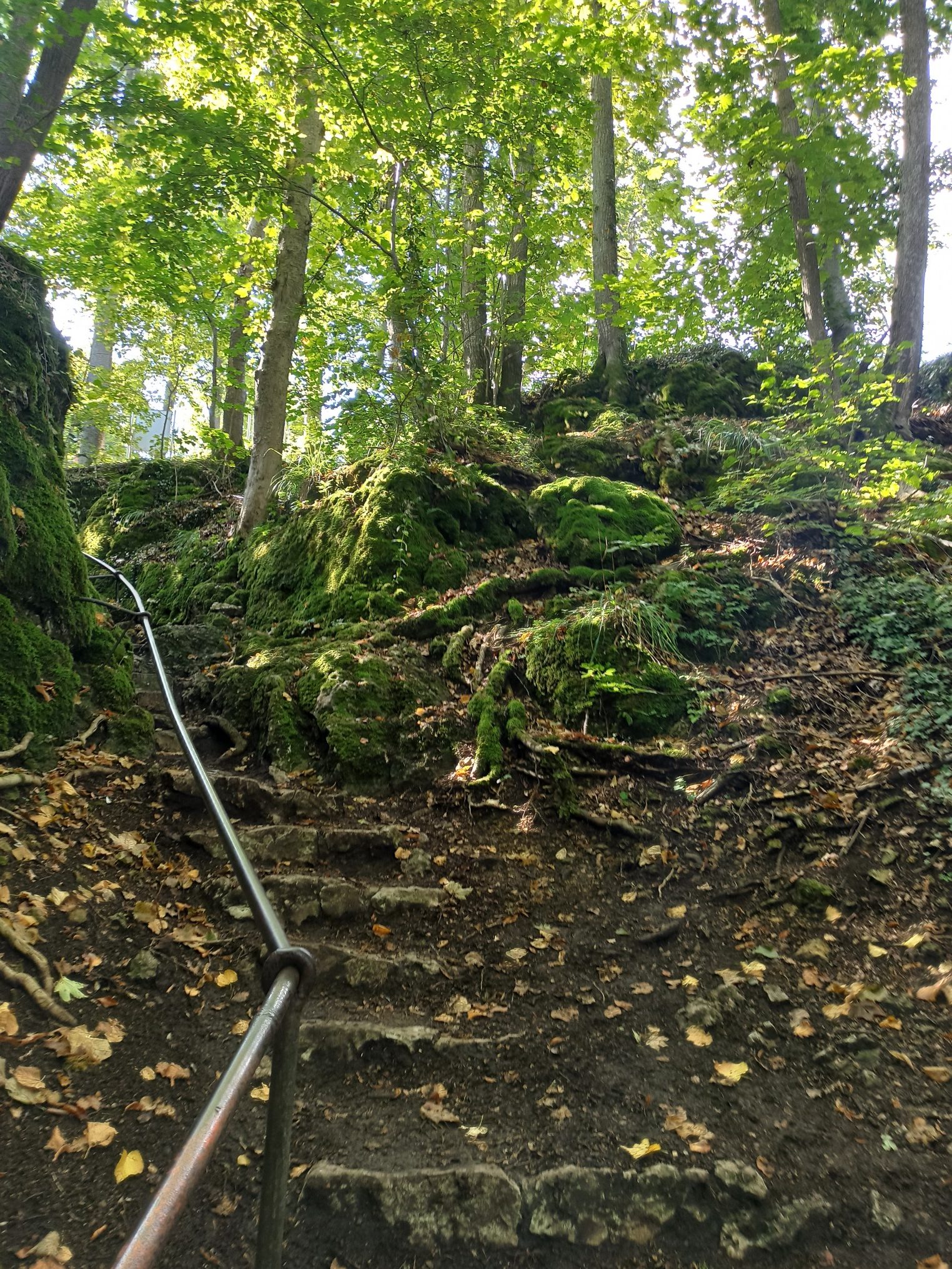 Von Lautern geht es am Bezirksamt steil, fast alpin den Berg hinauf in und durch die Höhle Haus in die Große Scheuer mit ihren 44 Metern Länge, durch den urig grünen Gang auf die Hochfläche über Lautern und Heubach. Vor zur Ruine Rosenstein, das bekannteste historische Ausflugsziel bei Heubach, das vom oberen Parkplatz auch als Spaziergang gut erreichbar ist und die Gaststätte dort bietet auch uns ein gutes Ziel.